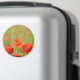 Runder Foto-Magnet mit kräftigen roten Mohn-Blume in einem grünen Feld voller Mohn. Es hat ein starkes Gefühl von Glück, Frühling und Sommer.