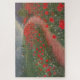 Pflücke vor der Ölmalerei des Sturms. Ein kurvenreicher Weg mit lebhaften roten Pappeln führt durch eine üppige grüne Landschaft unter einem bewölkten Himmel.