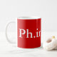 PhD-Fertigstellungsfeier 15 Unze-Tasse, lila Text auf Weiß.