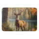 Zwölf Punkte Rack auf einem fabelhaften Hirsch. Das Waldgebiet im Herbst zu überprüfen, da er am Ufer eines kleinen Sees stehend ist.