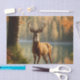 Zwölf Punkte Rack auf einem fabelhaften Hirsch. Das Waldgebiet im Herbst zu überprüfen, da er am Ufer eines kleinen Sees stehend ist.