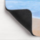 Ein personalisiertes Mauspad mit einem Foto einer hellblauen Ozeanszene mit sanften Wellen an einer Küste und weichem braunem Sand. Ein blauer Himmel mit flauschigen Wolken in der Ferne. Serene tropische idyllische Jahreszeit.