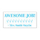 Diese positive Gummi-Briefmarke zeichnet sich durch die Lobesbotschaft "PHANTASTISCHER JOB!" und den Namen eines Lehrers oder Lehrers aus. Es ist auch mit einem dekorativen Karo versehen. Es könnte von einem Lehrer, Pädagogen oder Tutor genutzt werden, um zu bestätigen, dass ein Schüler gut abgeschnitten hat.