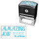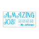 Dieses positive Gummi-Briefmarke-Design beinhaltet die Nachricht "PHANTASTISCHE JOB!" und einen individuellen Pädagogen-Namen. Es könnte von einem Lehrer, Pädagogen oder Tutor genutzt werden, um anzuerkennen, dass ein Schüler eine außergewöhnliche Arbeit geleistet hat.