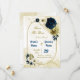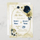 Schöne marineblaue Elfenbein Blume mit Weiß und Gold mit goldenen Blätter geometrische Save the Date Einladung. Die Einzelheiten des Glitzer werden simuliert. Für weitere Informationen klicken Sie bitte auf die obige Sammlung oder kontaktieren Sie mich.
