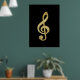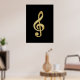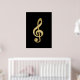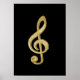 Phantastische glänzende goldene Bar dreifach Musiknote, schwarzer Hintergrund, anpassbare Hintergrundfarbe. Bildausdruck