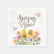 Phantastische Grace Serviette zeigt ein wunderschönes Blumengarten in Aquarellfarben mit gelben Sonnenblumen, rosa und orangefarbenen Blume und Schmetterlingen. Es zeigt die geliebte Christliche Botschaft von Gottes Phantastischer Gnade.