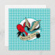 Handgezeichnete Tätowierstanzbilder feiern Ihre Lieblingsmutter mit Aqua-blauen Vögeln, rotem Herz und "phantastischen Mama" Banner auf aqua Harlequin Hintergrund. Ideal für Muttertag oder andere spezielle Tage, um sie mit anpassbarem Text auf der Rückseite zu ehren