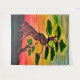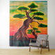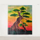 Das Türkisblau des Abends hebt die Silhouetten zweier Baobabäume hervor. Sie wachsen hier für immer und immer, alte und junge Generationen. Die Grafik sieht auf dem Wandteppich schön aus.