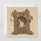 Eine niedliche Abbildung eines Beagle in einem hohlen Baum, der mit farbigen Blätter bedeckt ist