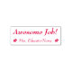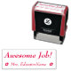 Dieses ermutigende Design der Gummi-Briefmarke beinhaltet die inspirierend Botschaft "Phantastisch Job!" und den Namen eines angepassten Lehrers. Es verfügt auch über ein dekoratives Symbol für Blume. Es könnte von einem Lehrer, Pädagogen oder Tutor genutzt werden, um zu bestätigen, dass der Schüler gut abgeschnitten hat.