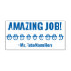 Dieses inspirierend Design der Gummi-Briefmarke beinhaltet die ermutigende Rückmeldung "PHANTASTISCHE JOB!" und den Namen eines Lehrers oder Lehrers. Es verfügt auch über dekorative Snowman-Ikonen. Es könnte von einem Lehrer, Lehrer, Lehrer oder Tutor genutzt werden, um anzuerkennen, dass ein Schüler gut abgeschnitten hat.