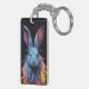 Phantastisches Blaues Kaninchen am Feuer Schlüsselanhänger