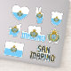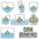Phantastisches San Marino formt Staatssymbole Sticker. Zwei Ländernamen, einer in den Farben der Nationalflagge und der andere in der Word Cloud mit den Worten "San Marino" in den verschiedenen Alphabetformularen und/oder Sprachen und Schriftart. Alle Wörter sind mit den nationalen Farben auf der Flagge von San Marino, Schönes Herz, Schild (escutcheon) und Karte mit der Darstellung der San Marino Nationalflagge. Handaufkleber mit den beiden Fingern nach oben, der Sieg gefüllt mit den Farben der San Marino Nationalflagge. Die letzten beiden Aufkleber sind die Nationalflagge des San Marino und die nationale Wappenflagge. Das ist das großartige Set von hervorragenden Aufklebern, von denen die meisten einzigartig und handgezeichnet sind. Alle Aufkleber sind mit der Funktion "Anpassen!" vollständig anpassbar. Sie können sie mischen und nach Ihren Wünschen anpassen. Wenn du mehrere Herzen will, aber kein Schild Feuer weg. Vielleicht will du nur Hand mit dem Siegeszeichen? Ganz einfach, entfernen Sie alles andere und machen Sie mehrere Kopien der Hand. Diese großen Aufkleber sind das perfekte klebrige Geschenk für jeden Anlass. Feuer weg und stecke sie dort, wo dein Herz will! © 2023 Länderder Welt