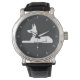 Uhr, Klassische Damenuhr mit schwarzen Lederarmband