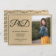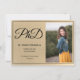 Eine vertikale Foto-Ankündigung für einen Doktoranden. Dieses Design hat schwarze Buchstaben mit dem Wort PhD in einem Skript-Schriftart und einen goldenen Hintergrund (ohne Folie) (das Papier ist derzeit Set zu einem schimmernden Papiertyp, um diesen Goldton mehr Gewicht zu geben). Das Foto ist eine Vorlage, die für Sie ausgetauscht werden soll. Alle Wörter können angepasst werden. <i>Fotografie © Storytree Studios, Stanford, CA</i>
