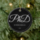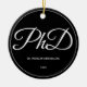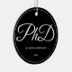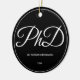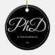 Ein Ornament für einen Doktorand mit einem Schwarz-Weiß-Schema. Es zeigt den Grad, den Namen und das Jahr. Einfach anpassen Sie dieses Ornament, fügen Sie es in Ihren Warenkorb, und haben Sie einen Vorzug dieser großen Leistung. PhD Abschluss Schwarzer Name Jahr Keramik Ornament Holidaday Design | ©Melissa Patton - Designer