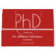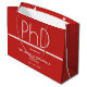 Geschenktaschen für eine PhD-Abiturparty mit rotem und weißem Design. Dieser Artikel ist Teil einer Sammlung von Graduiertengruppen, die eine Einladung, Foto-Ankündigung, Papierservietten, Platzkarten und mehr beinhaltet. Passen Sie diese Gegenstände an, fügen Sie sie Ihrem Warenkorb hinzu und feiern Sie diese große Errungenschaft. PhD Graduation Party Große Geschenktasche Holidayday-Design | ©Melissa Patton Designer