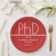Papier Teller für eine PhD-Abiturparty mit roter und weißer Optik. Dieser Artikel ist Teil einer Sammlung von Graduiertengruppen, die eine Einladung, Foto-Ankündigung, Papierservietten, Platzkarten und mehr beinhaltet. Passen Sie diese Gegenstände an, fügen Sie sie Ihrem Warenkorb hinzu und feiern Sie diese große Errungenschaft.