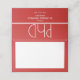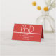 Platzkarten für eine PhD-Abschlussfeier mit roter und weißer Optik. Dieser Artikel ist Teil einer Sammlung von Graduiertengruppen, die eine Einladung, Foto-Ankündigung, Papierservietten, Platzkarten und mehr beinhaltet. Passen Sie diese Gegenstände an, fügen Sie sie Ihrem Warenkorb hinzu und feiern Sie diese große Errungenschaft.