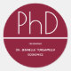 Aufkleber für eine PhD Graduierungsparty mit bordeauxrotem und weißem Design. Dieser Artikel ist Teil einer Sammlung von Graduiertengruppen, die eine Einladung, Foto-Ankündigung, Papierservietten, Platzkarten und mehr beinhaltet. Passen Sie diese Gegenstände an, fügen Sie sie Ihrem Warenkorb hinzu und feiern Sie diese große Errungenschaft.