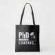 Humorvolles Design mit einer Schwarz-Weiß-Lade-Bar mit dem Text "PhD Loading..", das den langen und oft herausfordernden Prozess des Promotion-Vorhabens erfasst. Es ist eine wirkungsvolle Erinnerung, dass Beharrlichkeit sich auszahlt und jedem Lächeln bringt, der die harte Reise hinter sich hat, seinen Doktortitel zu machen.