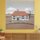 Colourful artwork of an old Wealden farmhouse in the English countryside, with an old windmill in the background, and a pheasant who has come to visit. Perfect for anyone who loves folk art.