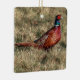 Das Phäasant (Phasianus colchicus) wird auch als Fasan oder Ringhals bezeichnet. Es ist ein bekannter Wildvogel. Sie wurden in Nordamerika eingeführt und haben sich etabliert und verbreitet. Das ist ein Foto eines männlichen Fasans im Herbstgras.