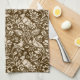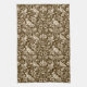 Küchenhandtuch in William Morris, Jugendstil-Tapete-Design von Fasantien und Hasen Set zwischen Blätter, Weinreben und Blume - beige auf schokoladenbraunem Hintergrund