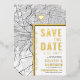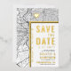 Eine einzigartige Einladungskarte mit einer Karte der Stadt Philadelphia, Pennsylvania, die rettend ist. Es verfügt über einige einzigartige Merkmale, die Ihren zukünftigen Gast beeindrucken, wie die Namen der Braut und des Bräutigams, den Namen der Stadt und die Worte "Save the Date" in Goldfolie. Ein Herzsymbol aus Goldfolie zeigt Ihren Standort der Liebe in der Stadt an. Die Stadtkarte liegt vorne und hinten und kann skaliert und umgeschlagen werden. Alle Elemente dieser Einladung sind freigeschaltet, so viel Spaß haben, kreativ zu sein und es zu Ihrem Stil zu machen.
