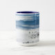 Christliche inspirierende Zitat-Schriftkaffeemaschine Tasse zeigt ein Naturfoto mit blauen Bergen, bedeckt mit einer nebeligen Wolke. Es zeigt Bible Verse Philippians 4:13, "Ich kann alles durch Christus tun, der mich stärkt."