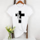 Our women's t-shirt adorned with a cross and Philippians 4:13 "I can do all things through Christ who strengthens me" in hand scripted letters on the front. View our full selection of apparel in our Zazzle store!