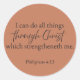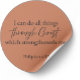Minimalist Christian sticker featuring Philippians 4:13 on a warm muted clay background with clean dark typography.