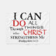 Informieren Sie sich in unserem Design über die aufstrebenden Philippinen 4:13. Der Vers wird in verschiedenen faszinierenden Schriftart präsentiert, mit den wirkungsvollen Worten 'Do' und 'Christ' strahlend in lebendigem Rot. Dieses Design verkörpert wunderbar das Wesen von Kraft und Glauben und erinnert dich daran, dass du alles durch Christus machen kannst, der dich stärkt. Nutzen Sie es stolz als Quelle der Motivation und als Beweis für Ihren unerschütterlichen Glauben.