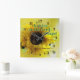 Eine schöne inspirierende Zitatuhr zeigt eine Sonnenblume auf einem hölzernen Hintergrund und zeigt eine geliebte Bibel Verse Philippians 4:4, "Freude am Herrn immer!"