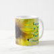 Eine schöne inspirierende Zitat-Tasse zeigt eine Sonnenblume auf einem Holzboden und zeigt einen geliebten Bibel Verse Philippians 4:4, "Freude am Herrn immer!"