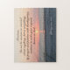 Jigsaw Puzzle mit inspirierender Zitatskriptur zeigt ein schönes Foto eines goldenen Sonnenuntergangs über blauem Meer. Es zeigt eine ermutigende Bibel Verse Philippianer 4:6: "Sei nicht ängstlich oder sorge dich um irgendetwas, aber in allem, durch Gebet und Petition mit Erntedank, weiterhin deine Wünsche Gott bekannt zu machen."