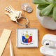 Wappen Philippinen Grosser Premium Square Schlüsselanhänger Vollfarbiger, vollblutdruckender Silberfarben Metallarm & Ring UV-resistente und wasserdichte Add-Fotos, Artwork und Text Keine Mindestbestellung