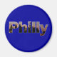 In den großen Briefen, die "Philly" buchstabieren, ist die Skyline bei Dämmerung.