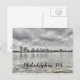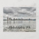 Hier ist die wunderschöne Philadelphia-Skyline, die von der anderen Seite des Delaware-Flusses in der Stadt Camden zu sehen ist. Wolken hängen über dem stürmischen Himmel, und die Spiegelungen der Wolkenkratzer sind im Wasser zu sehen.