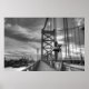 Dieses Schwarz-Weiß-Foto wurde während eines Spazierganges über die Ben Franklin Bridge in die Stadt Philadelphia aufgenommen. Die Architektur der Wolkenkratzer und Gebäude von Philly ist in der Ferne zu sehen. Die Innenstadt von Philadelphia befindet sich in der links unteren Ecke des Fotos.