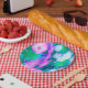 Phlox-Blume in Rosa, Grün, Blau und Weiß. Pappteller