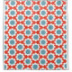 Ein helles, farbenfrohes Retro-inspirierte, blumengeschmückte Muster in Orange, Blau und Weiß.