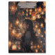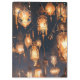 Detaillierte Anime einer schönen jungen Frau, die durch einen dunklen Raum mit hängenden Laternen wandert.