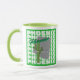 The coffee mug design saying "Phoenix" and "The Valley" is colored green. It makes it ideal for either coffee or tea in the mornings. It is microwave and dishwasher safe.