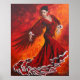 Ist dieser Flamenco-Tänzer, der sich in üppiger roter Samtdecke als exotischen Vogel vorstellt?