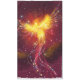 Eine Tischdecke mit einem Phönix, der auf einem lila Hintergrund aufsteigt.