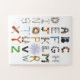 Einzigartiges Objektalphabet, das die Buchstaben des Alphabets mithilfe von Haushaltsobjekten ausgibt. A für Aluminiumfolie, B für Knöpfe, Münzen, Dominosteine, Brillen, Gabel, google Augen.... Alphabet-Lernpuzzle, das eine künstlerische Sensibilität hat.