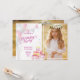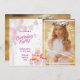 Capture the joy of your child’s big day with this adorable photo birthday invitation! Featuring pastel balloons, bunting, birthday cake, and presents — this two-panel design includes a customizable photo area to show off your little one’s excitement. Soft pink, purple, and white tones make it perfect for girls’ birthdays or any sweet celebration.