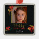 Photo Customizable Christmas Card, Black Gold Red Ornament Aus Metall